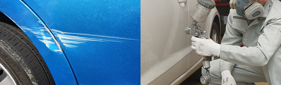 車体の擦り傷やヘコミの修繕を行います。擦り傷を放置してしまうとハゲた塗装から雨水などが侵入し、車体にサビができたり、パーツ交換になってしまい負担も大きくなってしまうことも。